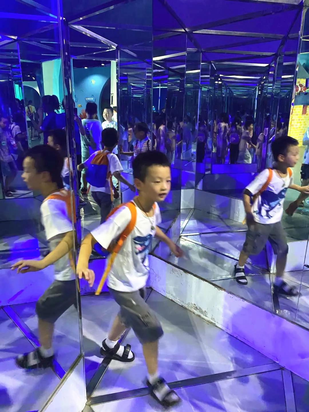 有趣的镜子迷宫 也让小朋友们一时摸不着出口~ 兜兜转转好一会才走出来
