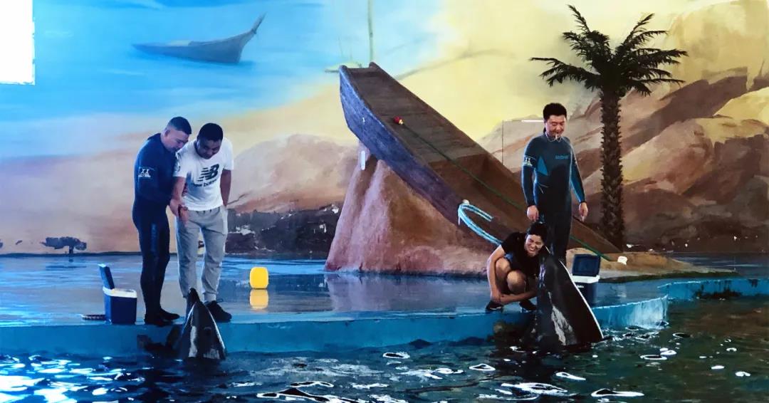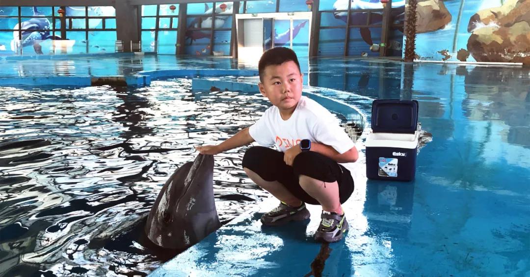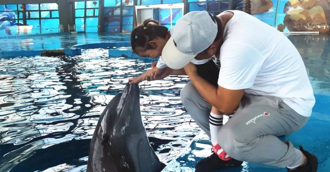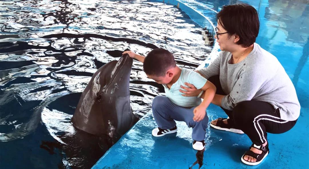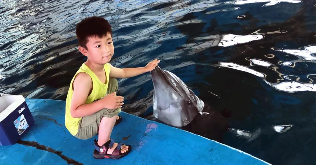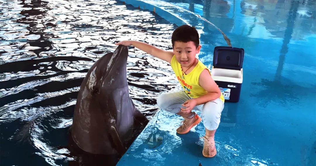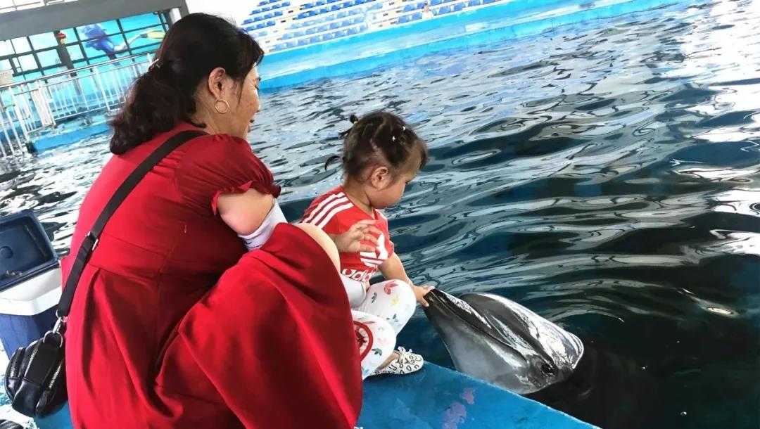 我们“大宝”、“小贝”的小粉丝 便拉着家人的手走到了我们的海豚面前